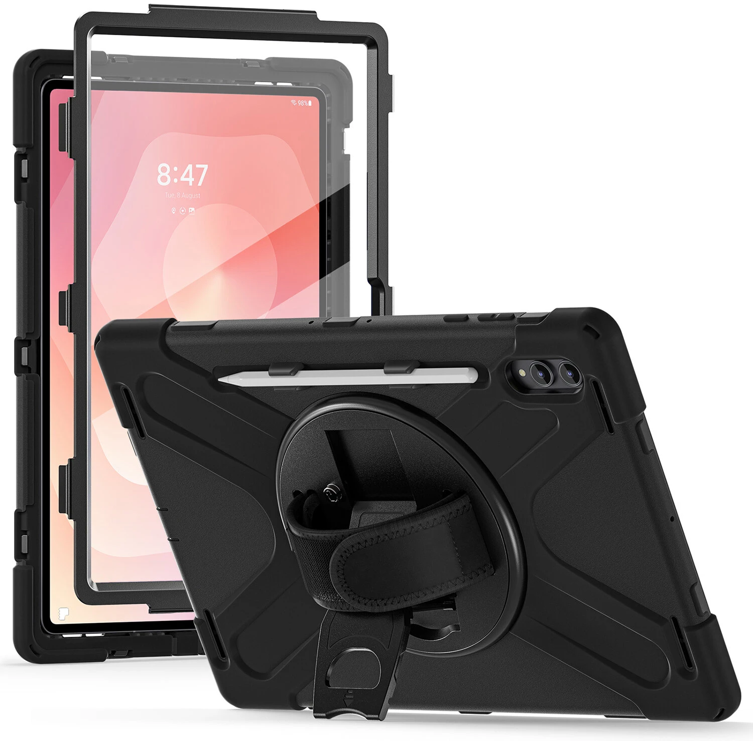 Dieses robuste Markencase ist der perfekte Begleiter in jeder Lebenslage: Egal ob auf der Baustelle, im Büro oder Freizeittouren. Der Multifunktionsgriff lässt dich dein Tablet ganz einfach im Portrait- oder Landscape-Modus aufstellen. So kannst du entspannt Videos anschauen, oder mit Familie und Freunden und freien Händen in die “Face-Time” gehen.